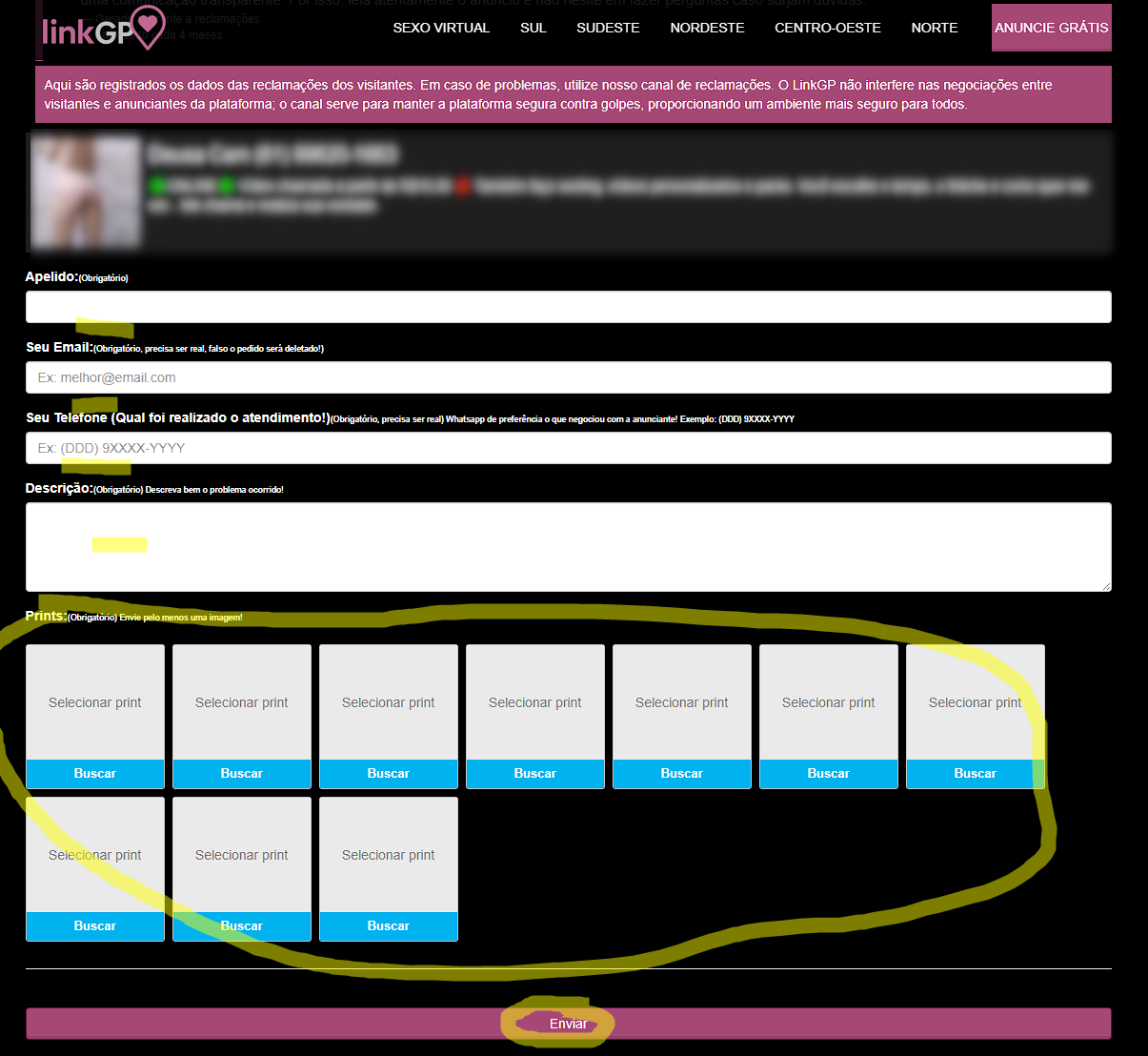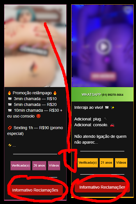 - Se a anunciante não quiser fazer a chamada ou não cumprir o tempo combinado, registre uma reclamação diretamente no perfil dela. A denúncia é sigilosa e apenas você e a acompanhante virtual têm acesso a ela.